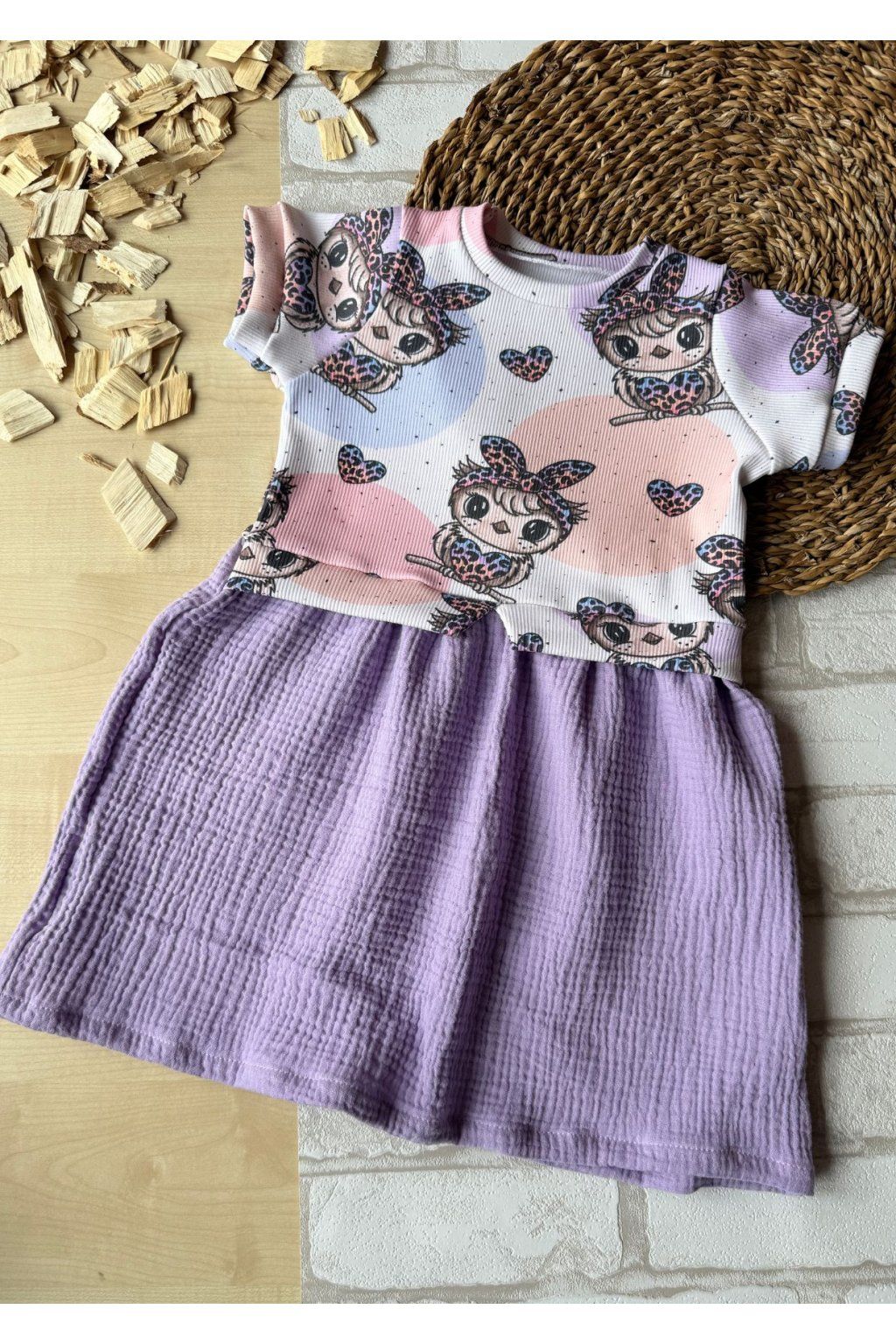 Slušivé šatičky se vzorem soviček s mušelínovou sukýnkou ve velikosti 86.