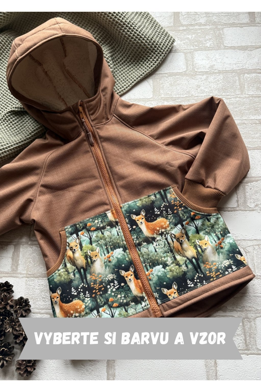 Kapsy lze ušít ze stejného softshellu jako je bundička - bundička by byla tedy jednobarevná nebo si jí můžete doplnit hravým vzorem, který si vyberete zde - vzorník softshellu.
