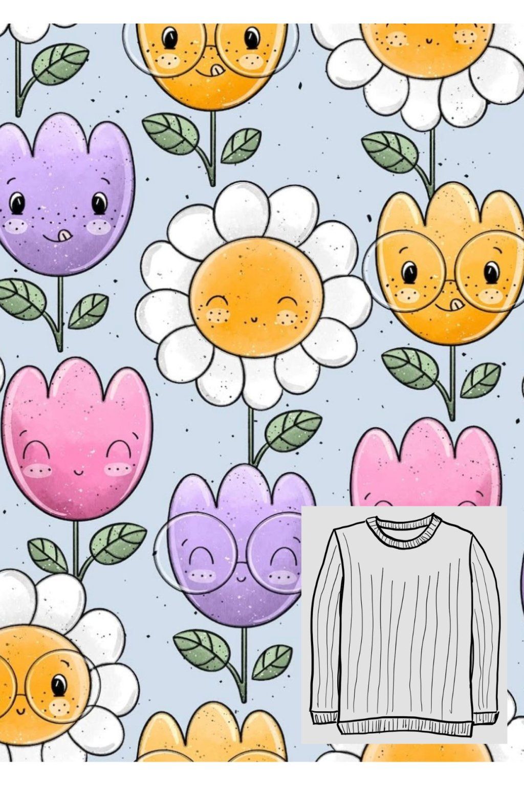 Jarní květiny na příjemném žebrovaném úpletu trička pro malé i velké parádnice.